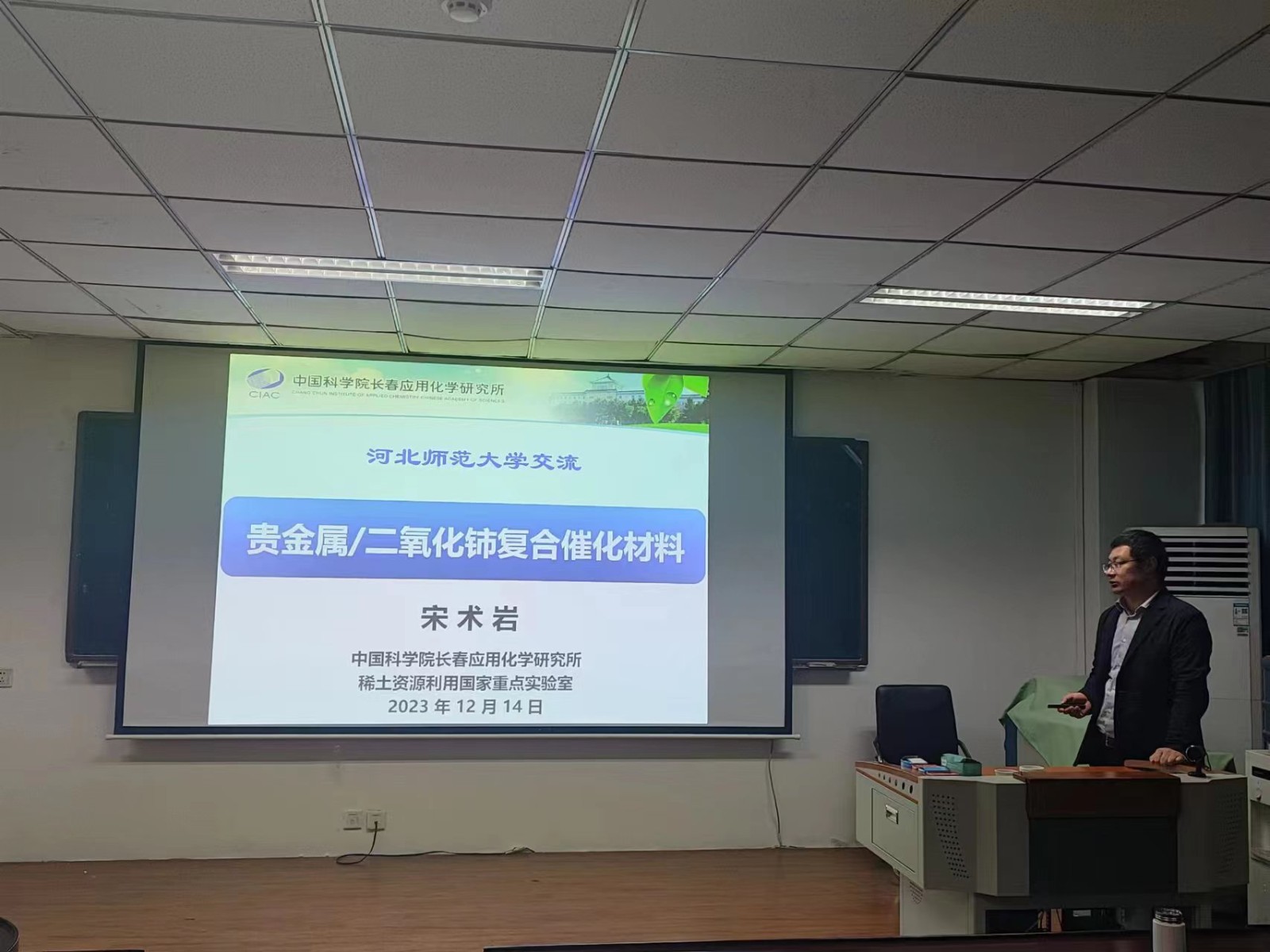 2023年12月14日上午,应太阳城 邀请,中国科太阳城 长春应用化学研究所宋术岩研究员为太阳城 师生做了题为“贵金属/二氧化铈复合催化材料”的学术报告。报告由副院长韩占刚教授主持,太阳城 相关教师与研究生参加了本次学术讲座。