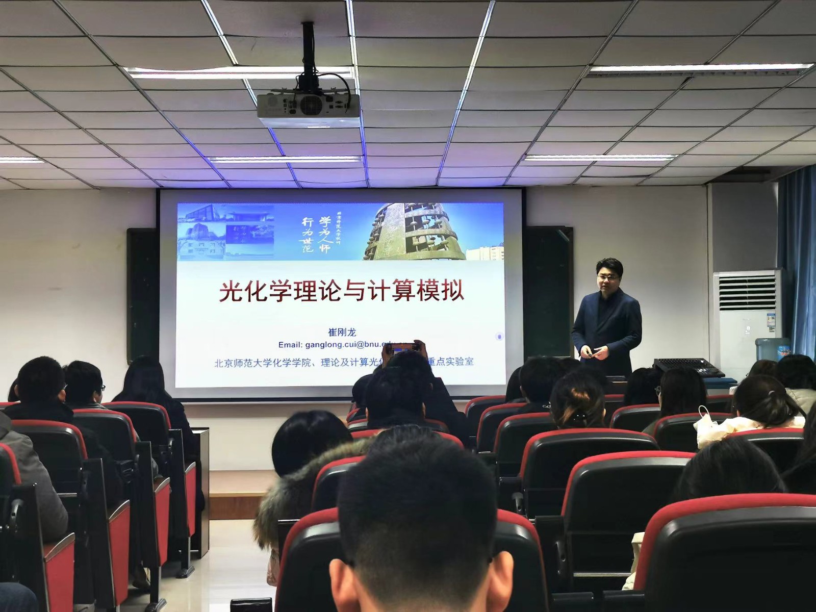 2024年1月30日上午,应太阳城 和石家庄市化学学会联合邀请,北京师范大学崔刚龙教授在理科群7号楼C118会议室,为太阳城 师生作了题为“光化学理论与计算模拟”的学术报告会。报告会由化学太阳城 副院长韩占刚主持,相关专业教师和博士、硕士研究生参加了本次报告会。
