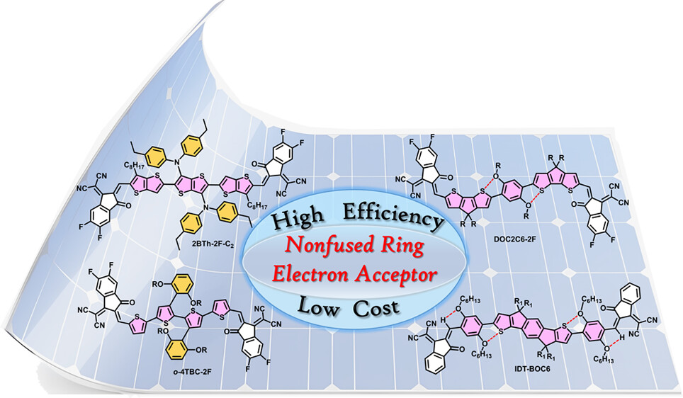 目前高性能有机太阳能电池普遍采用的稠环电子受体材料虽具有优异的光电特性,但其多步合成工艺中必须包含低收率的环化反应环节,导致合成成本居高不下。非稠环电子受体(NFREAs)材料规避传统环化步骤实现了合成路径的显著优化,在保持器件效率竞争力的同时展现出突出的成本优势,为推进有机太阳能电池商业化应用提供了极具潜力的解决方案。